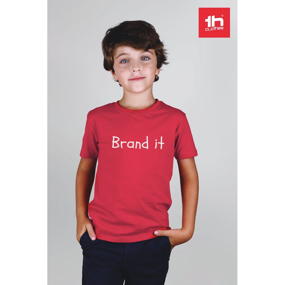 Kinder T-Shirt aus 100% Strickjersey und Baumwolle (190g/m²) mit kardiertem Baumwollfaden, unisex, mit geripptem Kragen in 1x1 Ripp, Jersey-Verstärkung und Doppelnaht an den Ärmeln und Saum. Größen: 2, 4, 6, 8, 10, 12