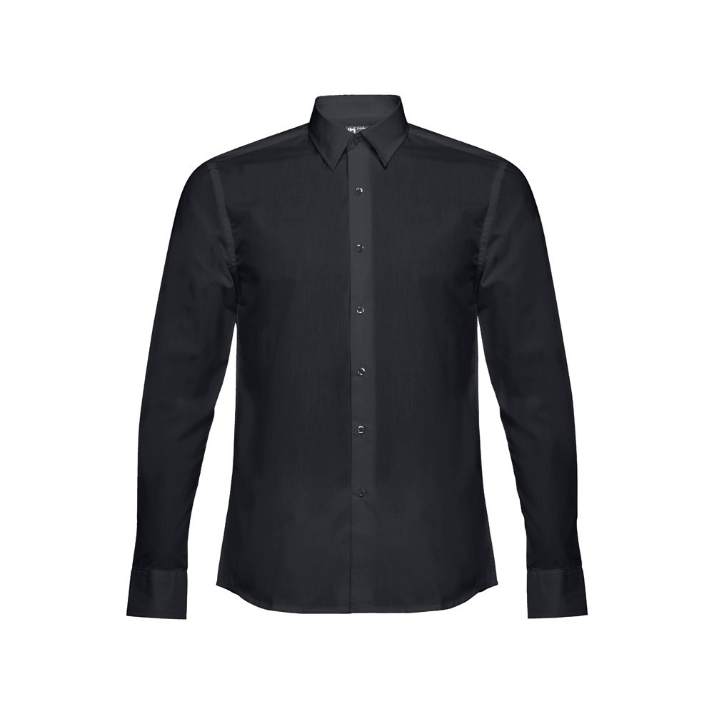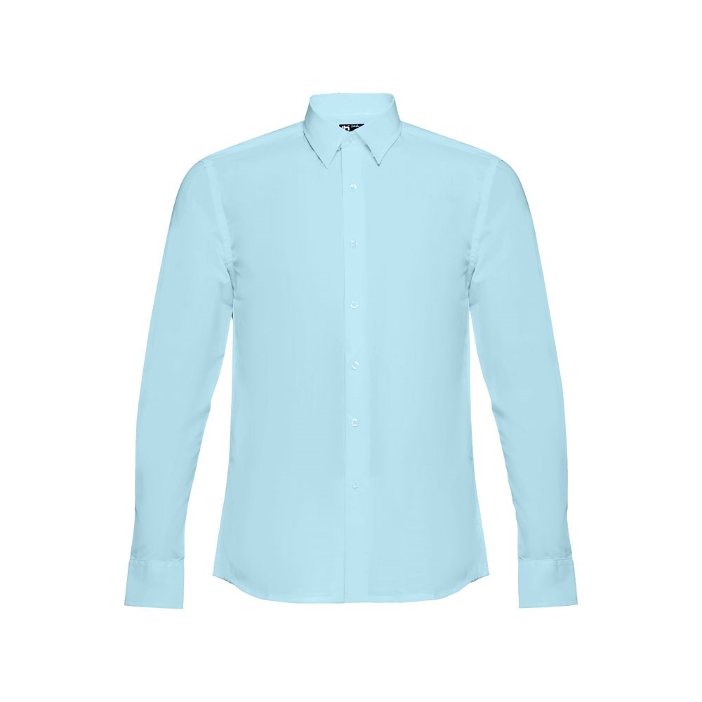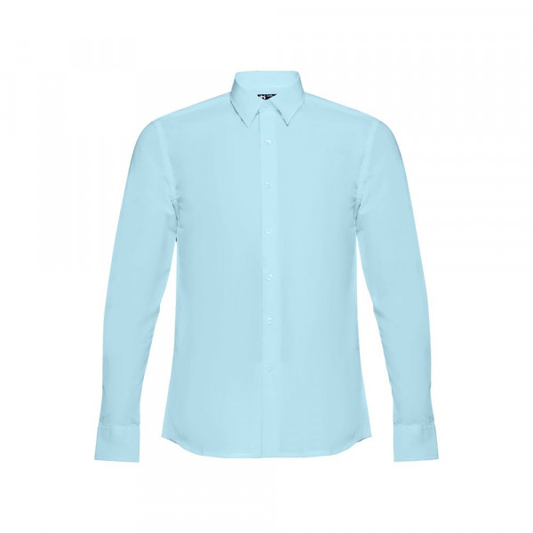 Herren langarm Popeline Hemd aus 35% Baumwolle und 65% Polyester (115g/m²) mit einem unsichtbaren Knopf für Kragenfestigkeit, einer Knopfleiste mit 7 Knöpfen und verstellbare Manschetten mit 1 Knopf. Tailliertes Hemd mit zwei Pinzetten am Rücken. Größen: S, M, L, XL, XXL