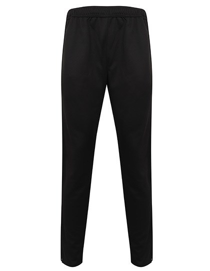 Enganliegende Sporthose aus Strickgewebe mit kontrastfarbenen Seiteneinsätzen | Seitentaschen mit Reißverschluss | Elastischer Bund mit Kordelzug | Knöchel-Reißverschluss mit Reißverschluss-Schutz und Feststellschiebern