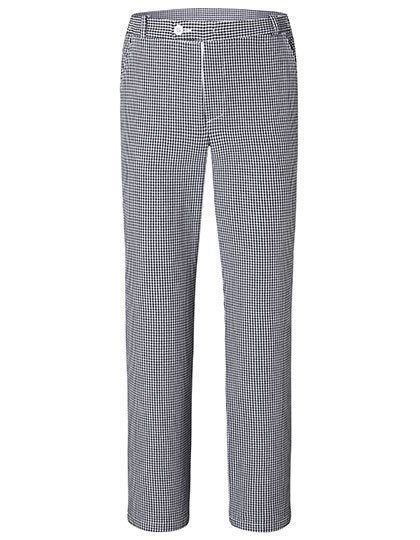 Köperstoff, 245 g/m², Pepitadesign | Kochhose für Herren mit seitlichen Gummizug am Bund | Gürtelschlaufen | 2 seitliche Eingrifftaschen | 1 aufgesetzte Gesäßtasche rechts | Waschbar bis 60°C