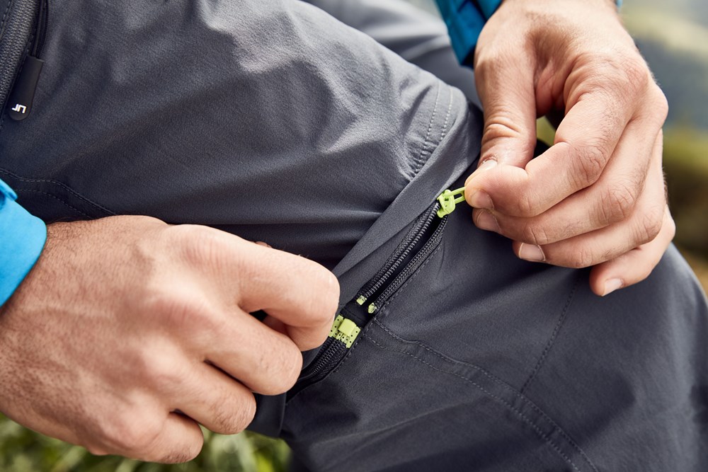 Leichtes, robustes und bi-elastisches Gewebe Wasser- und schmutzabweisend durch BIONIC-FINISH®ECO Schnelltrocknend Leicht zu Shorts abzippbar Teilelastischer Bund mit Gürtelschlaufen und Gürtel 2 seitliche Taschen, 1 Gesäßtasche, 1 Tasche am Bein Alle Taschen mit Reißverschluss.