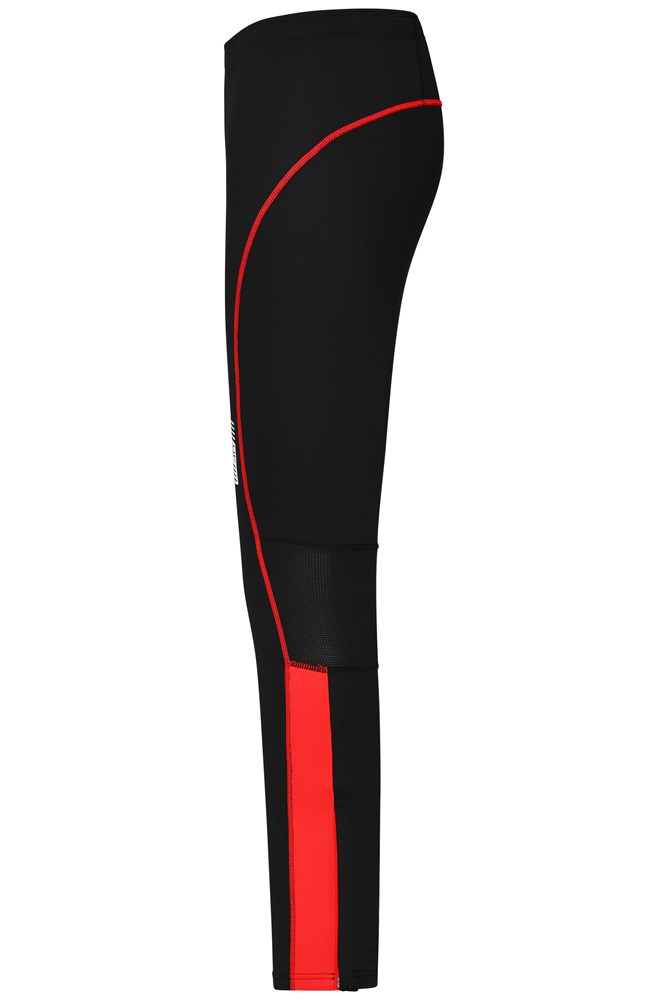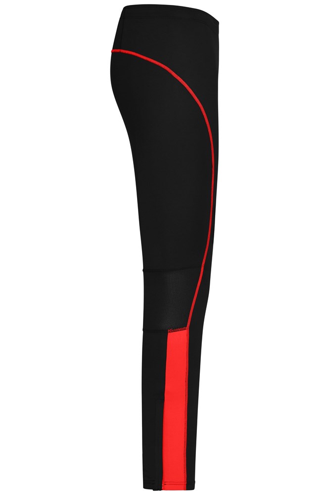 Weiche, elastische Qualität mit Elasthan Atmungsaktive Mesheinsätze Kontrastfarbige Einsätze und Flatlocknähte Beinabschluss mit Reißverschluss Modisches Reflextransfer und Reißverschlusstasche an der Rückseite Elastischer Bund mit Kordelzug.