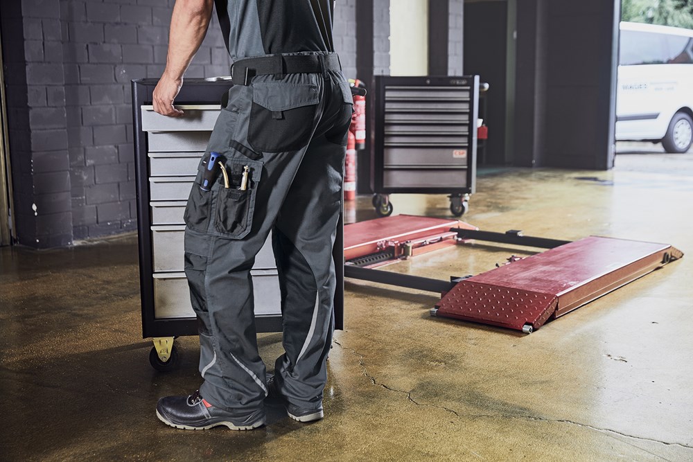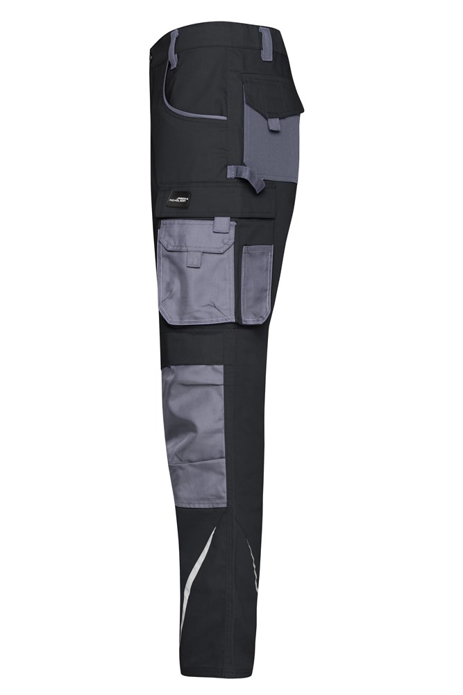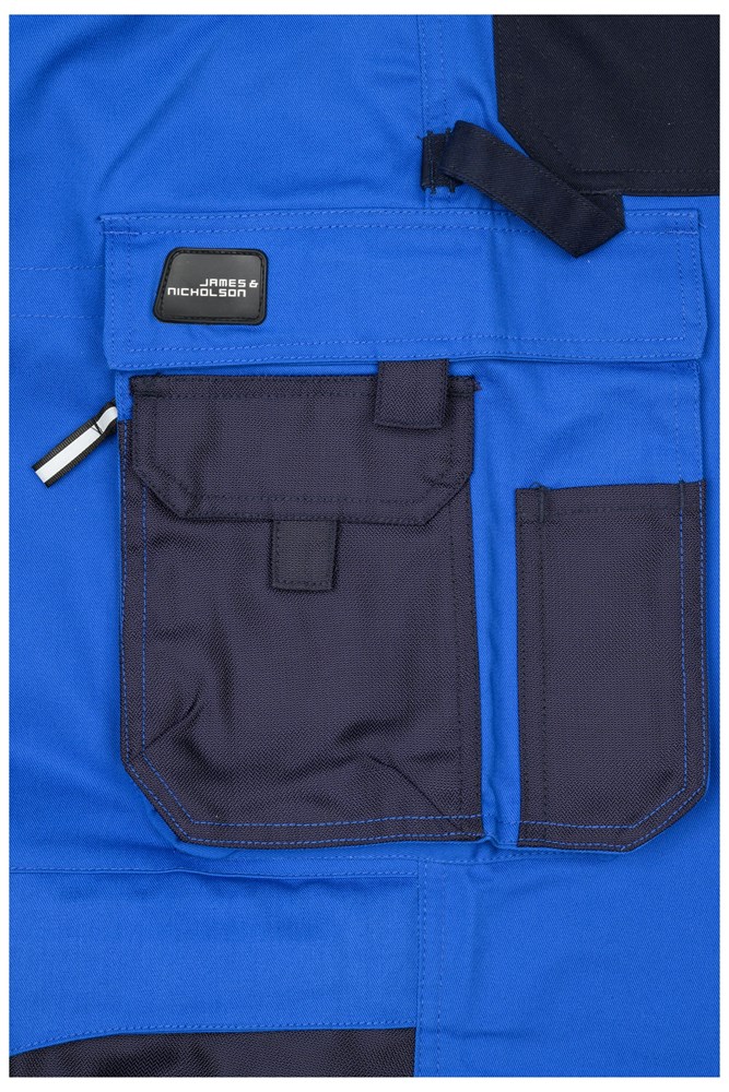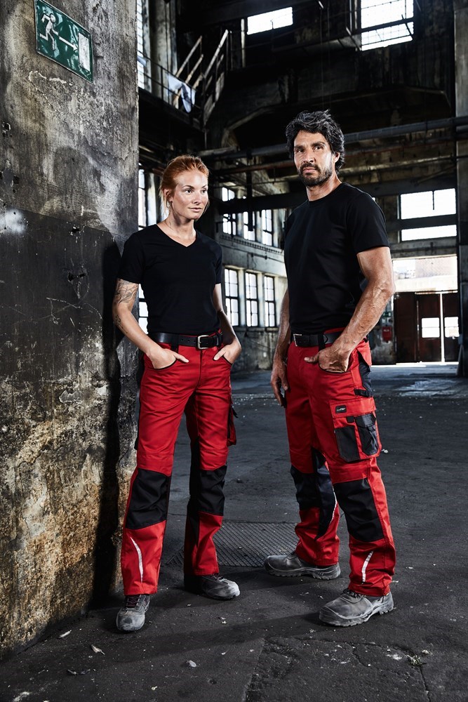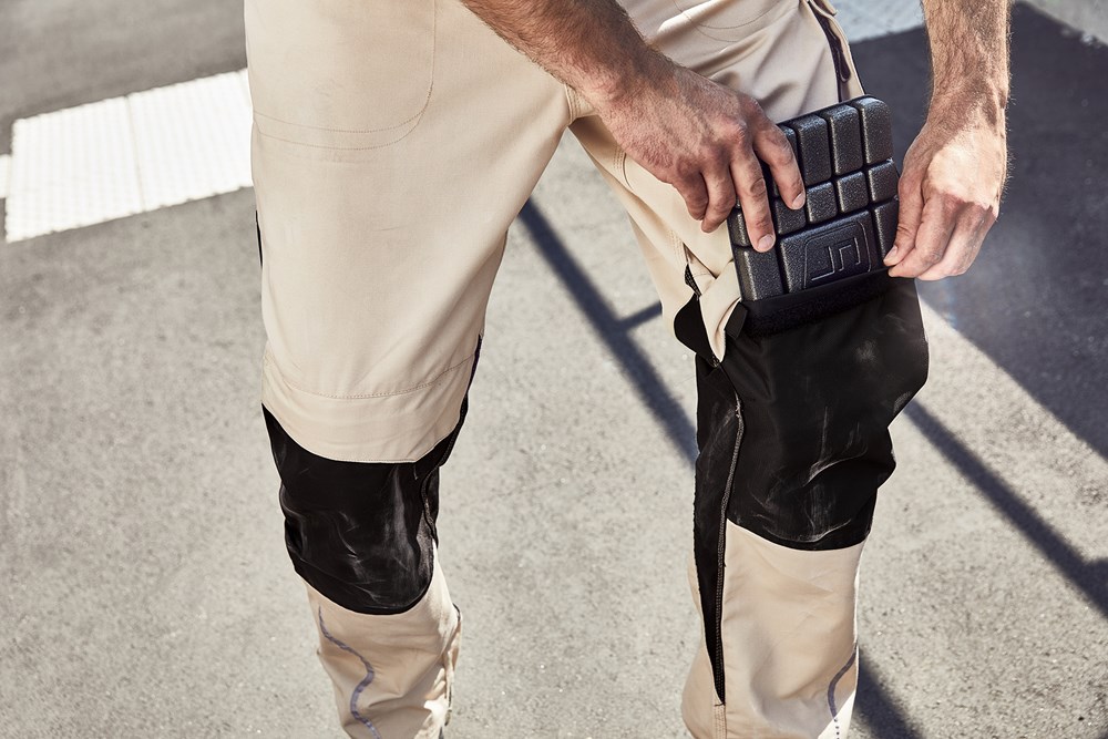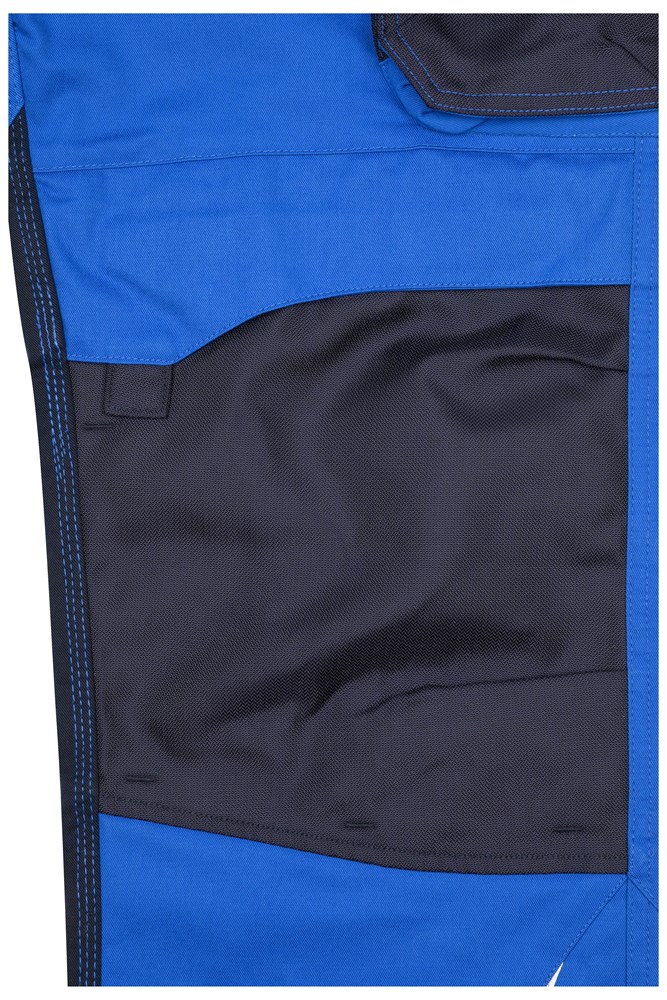 Robustes, strapazierfähiges Mischgewebe Dehnbarer Bund mit Gürtelschlaufen Mit CORDURA® verstärkte Kniepolstertasche Reißfeste Dreifachnaht Schubtaschen, diverse Werkzeugtaschen 2 Taschen mit Reißverschluss Zollstocktasche, Stiftefächer, Handytasche Reflexelemente (ohne Schutzfunktion/keine PSA) an Vorder- und Rückseite 60° waschbar, trocknergeeignet.