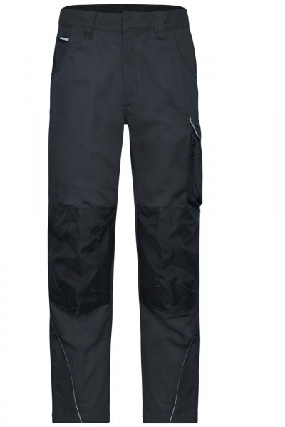Robustes, strapazierfähiges Mischgewebe Dehnbarer Bund mit Gürtelschlaufen Mit CORDURA® verstärkter Kniebereich Reißfeste Dreifachnaht Schubtaschen, diverse Werkzeugtaschen 2 Taschen mit Reißverschluss, Handytasche Zollstocktasche und Stiftefächer mit CORDURA® verstärkt Reflexelemente (ohne Schutzfunktion/keine PSA) an Taschen, Vorder- und Rückseite Reißverschlüsse: YKK 60° waschbar und trocknergeeignet Knöpfe und Verschlüsse: Um Beschädigungen am zu bearbeitenden Produkt zu vermeiden, sind alle Knöpfe und Reißverschlüsse verdeckt verarbeitet.