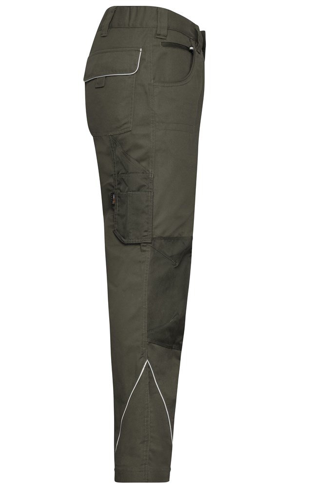 Robustes, strapazierfähiges Mischgewebe Dehnbarer Bund mit Gürtelschlaufen Mit CORDURA® verstärkter Kniebereich Reißfeste Dreifachnaht Schubtaschen, diverse Werkzeugtaschen 2 Taschen mit Reißverschluss, Handytasche Zollstocktasche und Stiftefächer mit CORDURA® verstärkt Reflexelemente (ohne Schutzfunktion/keine PSA) an Taschen, Vorder- und Rückseite Reißverschlüsse: YKK 60° waschbar und trocknergeeignet Knöpfe und Verschlüsse: Um Beschädigungen am zu bearbeitenden Produkt zu vermeiden, sind alle Knöpfe und Reißverschlüsse verdeckt verarbeitet.
