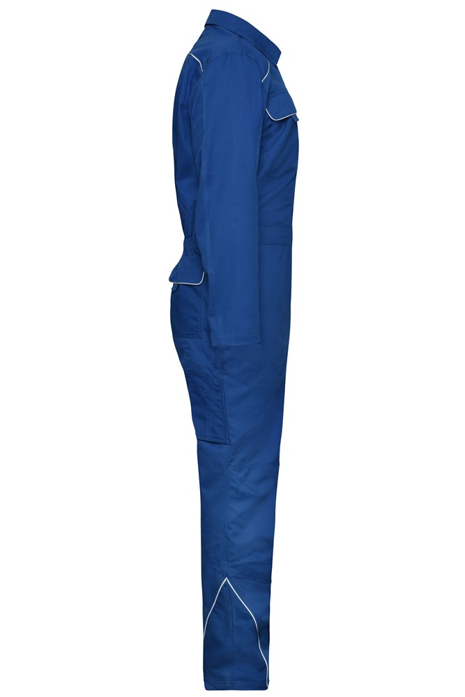 Robustes, strapazierfähiges Mischgewebe Gummizug und Bewegungsfalte im Rückenteil Verstärkter Kniebereich Reißfeste Dreifachnaht Verdeckter 2-Wege Reißverschluss 2 Schubtaschen, 2 Gesäßtaschen mit Patte, diverse Werkzeugtaschen, Zollstocktasche, eine Tasche mit Reißversschluss, Handytasche 2 Brusttaschen mit losem Taschenbeutel zur einfachen Veredelung Reflexelemente (ohne Schutzfunktion/keine PSA) an Taschen, Schulter, Rückenteil und Hose Reißverschlüsse: YKK 60° waschbar und trocknergeeignet.