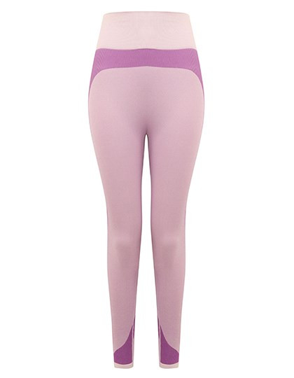 Schlauchware | Single-Jersey | Mehrfarbige Leggings in nahtloser Panel-Optik, zwischen den einzelnen Farben gestrickt | Hoch geschnitten | Angedeuteter Bund | Nahtloses Strickmaterial für Tragekomfort | Tombo-Abreißetikett