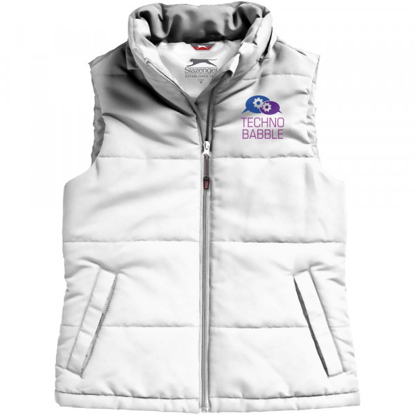 Abnehmbare Kapuze. Windschutz innen mit Kinnschutz. Elastischer Kordelzug mit verstellbaren Stoppern. Verdeckter Reißverschluss auf der Rückseite zwecks Werbeanbringung. Tailliert für eine schmeichelhafte Passform. Seitentaschen. Halbmond. Transfer Hauptlabel für den etikettfreien Komfort.