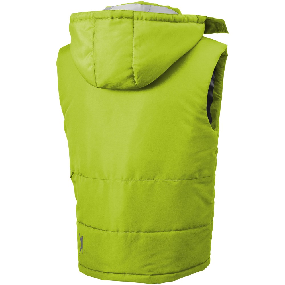 Abnehmbare Kapuze. Windschutz innen mit Kinnschutz. Elastischer Kordelzug mit verstellbaren Stoppern. Verdeckter Reißverschluss auf der Rückseite zwecks Werbeanbringung. Seitentaschen. Halbmond. Aufhängeschlaufe. Transfer Hauptlabel für den etikettfreien Komfort.