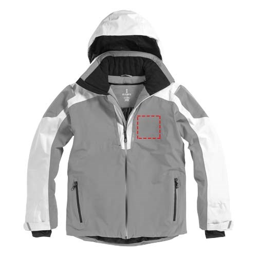 8.000 mm wasserfest und 500 g/m² atmungsaktiv. Verschweißte Nähte. Wasserdichter Reissverschluss. Echoheat™-Futter. Medienausgang innen mit Kabelführung. Elastische Strickbündchen mit Daumenloch. Innentasche mit Reißverschluss. Windschutz innen mit Kinnschutz. Abnehmbare Kapuze. Hinten länger als vorne.