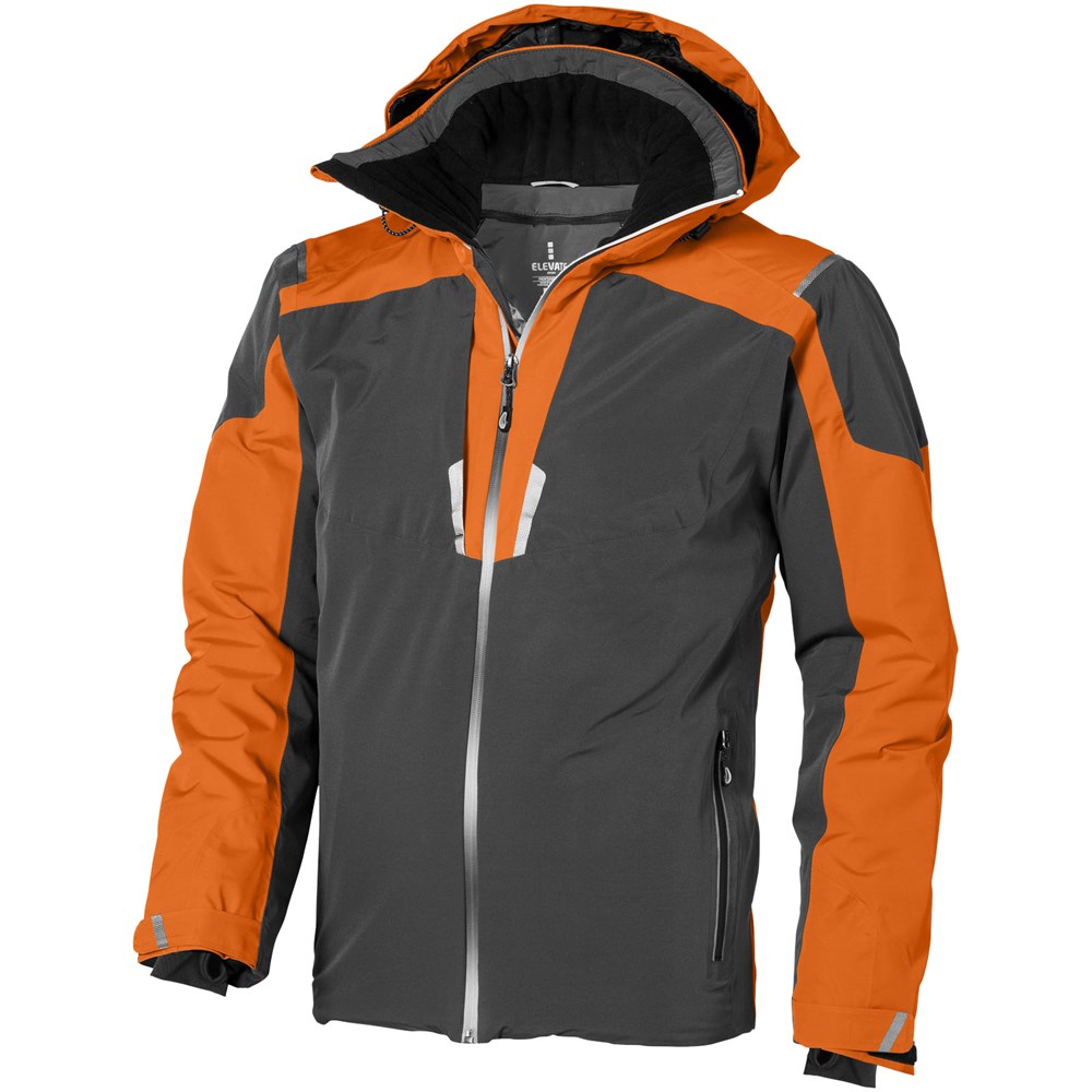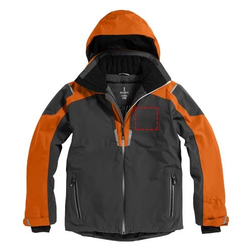 8.000 mm wasserfest und 500 g/m² atmungsaktiv. Verschweißte Nähte. Wasserdichter Reissverschluss. Echoheat™-Futter. Medienausgang innen mit Kabelführung. Elastische Strickbündchen mit Daumenloch. Innentasche mit Reißverschluss. Windschutz innen mit Kinnschutz. Abnehmbare Kapuze. Hinten länger als vorne.