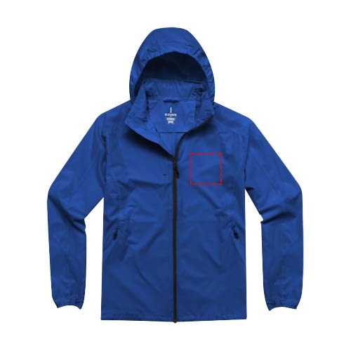 600 mm wasserfest. Kapuze mit elastischer Öffnung, einrollbar. Daumenlöcher. Brusttasche mit Reißverschluss. Belüftung an der hinteren Passe. Windschutz innen mit Kinnschutz. Kontrastfarbener 2-Wege-Spiralreißverschluss vorne in der Mitte. Reflektierende Details. Elastische Bündchen. Elastischer Kordelzug mit verstellbaren Stoppern.