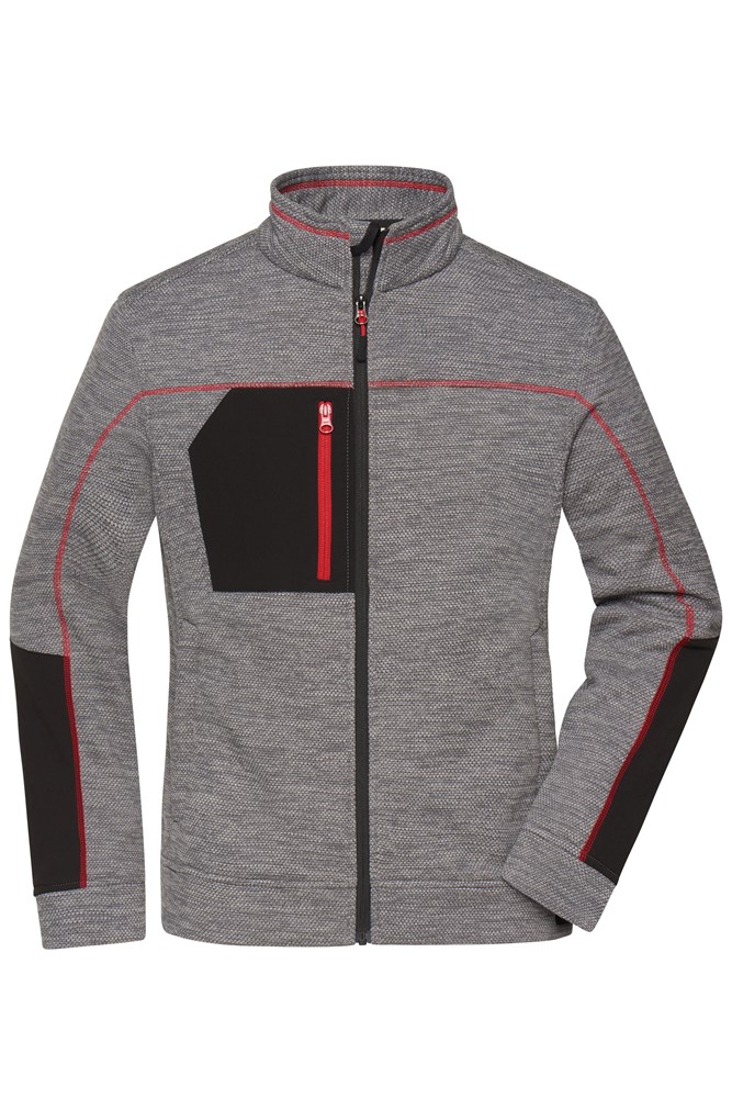 Weiches, wärmendes, pflegeleichtes Material in Melangeoptik Außenseite glatte, strukturierte Optik Innenseite flauschig weich angeraut 2 Seitentaschen mit verdecktem Reißverschluss, 2 Innentaschen Brusttasche aus Webstoff mit kontrastfarbigem Reißverschluss Kontrastnähte Stehkragen Durchgehend hinterlegter Reißverschluss mit Kinnschutz Reißverschlüsse: YKK JN1817: leicht tailliert.