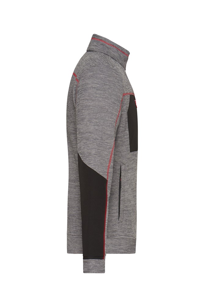 Weiches, wärmendes, pflegeleichtes Material in Melangeoptik Außenseite glatte, strukturierte Optik Innenseite flauschig weich angeraut 2 Seitentaschen mit verdecktem Reißverschluss, 2 Innentaschen Brusttasche aus Webstoff mit kontrastfarbigem Reißverschluss Kontrastnähte Stehkragen Durchgehend hinterlegter Reißverschluss mit Kinnschutz Reißverschlüsse: YKK JN1817: leicht tailliert.
