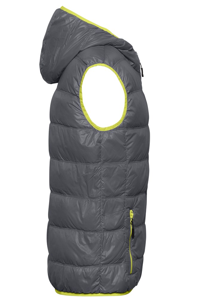 Softes, leichtes, wind- und wasserabweisendes Material Weste ist leicht verstaubar in separatem Packbeutel Doppelte Steppnähte Kontrastfarbiges Innenfutter und Reißverschlüsse Kontrastfarbige Einfassung an Kapuze, Armausschnitt und Saum 2 seitliche Taschen mit Reißverschluss 2 Innentaschen JN1062: Gerade Steppung JN1061: Body in V-Steppung, taillierter Schnitt. Maße: 1/2 Oberweite: 54 cm Länge ab Schulter Vorderteil: 69 cm Länge ab Schulter Rückenteil: 71 cm. Waschen: Maximale Waschtemperatur 30°C, Normalwaschgang. Bleichen: Nicht Bleichen. Bugeln: Nicht bügeln. Reinigen: Nicht trockenreinigen. Trocknung: Trocknen im Tumbler möglich, niedrige Temperatur, 60°C normaler Trocknungsprozess.