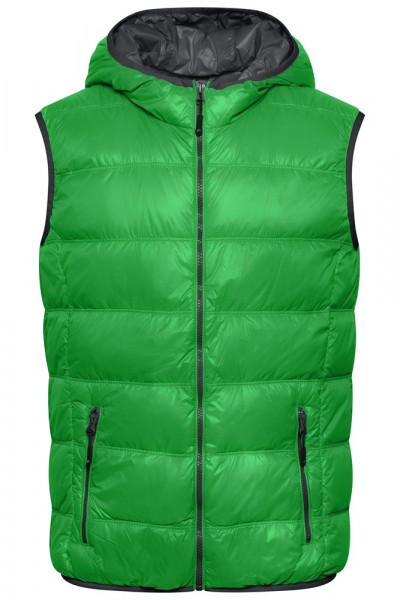 Softes, leichtes, wind- und wasserabweisendes Material Weste ist leicht verstaubar in separatem Packbeutel Doppelte Steppnähte Kontrastfarbiges Innenfutter und Reißverschlüsse Kontrastfarbige Einfassung an Kapuze, Armausschnitt und Saum 2 seitliche Taschen mit Reißverschluss 2 Innentaschen JN1062: Gerade Steppung JN1061: Body in V-Steppung, taillierter Schnitt.