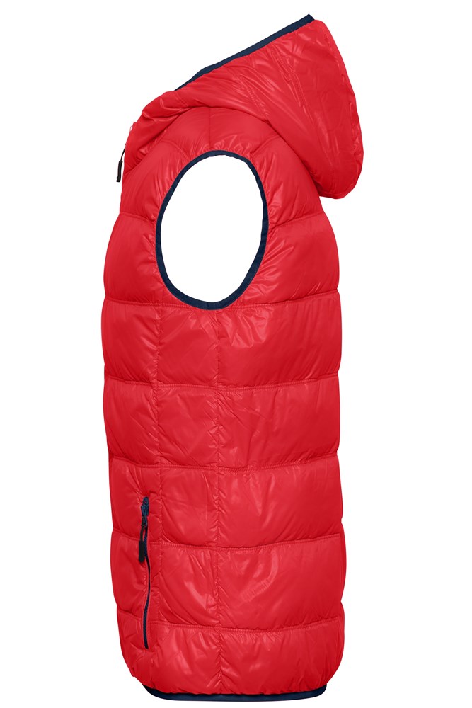 Softes, leichtes, wind- und wasserabweisendes Material Weste ist leicht verstaubar in separatem Packbeutel Doppelte Steppnähte Kontrastfarbiges Innenfutter und Reißverschlüsse Kontrastfarbige Einfassung an Kapuze, Armausschnitt und Saum 2 seitliche Taschen mit Reißverschluss 2 Innentaschen JN1062: Gerade Steppung JN1061: Body in V-Steppung, taillierter Schnitt.