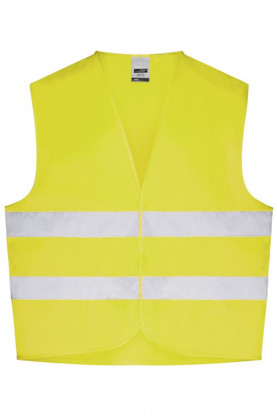 Einheitsgröße S-XXL für Erwachsene Einheitsgröße 140-164 für Kinder Fluoreszierendes Material mit reflektierenden Streifen Zertifiziert nach EN ISO 20471 : 2013 Klasse 2 Klettverschluss Weste kann in separatem Beutel verstaut werden.