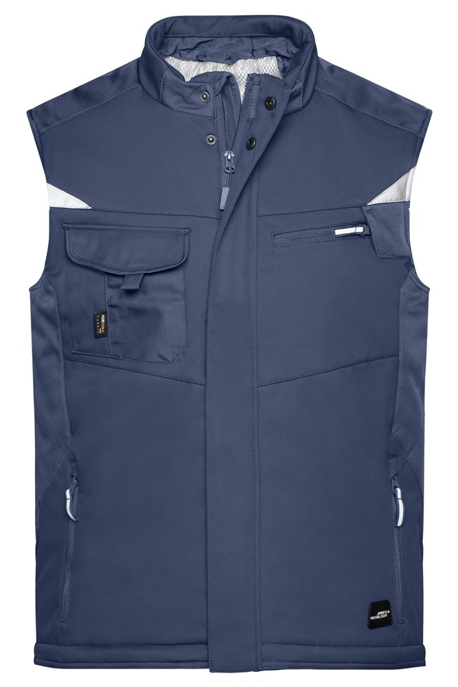 Robustes, strapazierfähiges Softshellmaterial Wind- und wasserabweisend (2.000 mm Wassersäule) Atmungsaktiv und wasserdampfdurchlässig (2.000 g/m²/24h) Stehkragen innen mit weichem Fleece Schulterbereich mit CORDURA® verstärkt Durchgehend unterlegter Reißverschluss mit Windschutzblende Seitentaschen, Brusttasche und Innentasche mit Reißverschluss Brusttasche mit Klappe, Handytasche innen Reflexelemente (ohne Schutzfunktion/ keine PSA) am Vorder- und Rückenteil Reißverschluss zur Rückenveredelung.
