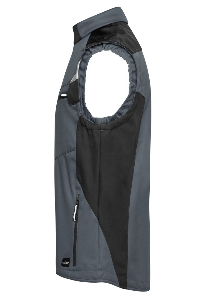 Robustes, strapazierfähiges Softshellmaterial Wind- und wasserabweisend (2.000 mm Wassersäule) Atmungsaktiv und wasserdampfdurchlässig (2.000 g/m²/24h) Stehkragen, elastischer Armabschluss Schulterbereich mit CORDURA® verstärkt Durchgehend unterlegter Reißverschluss mit Windschutzblende Seitentaschen und Brusttasche mit Reißverschluss Brusttasche mit Klappe, Innentaschen Reflexelemente (ohne Schutzfunktion/keine PSA) am Armausschnitt und Rückenteil.