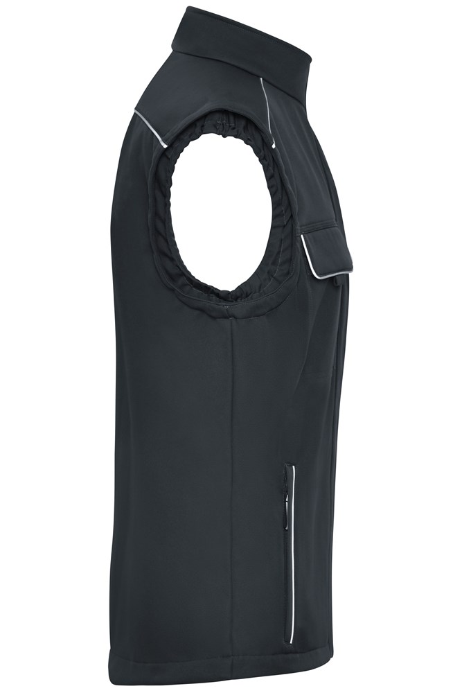 Robustes, strapazierfähiges Softshellmaterial, Innenseite Fleece Wind- und wasserabweisend (2.000mm Wassersäule) Atmungsaktiv und wasserdampfdurchlässig (2.000g/m²/24h) Stehkragen Verlängertes Rückenteil Elastischer Abschluss am Armausschnitt für perfekte Passform Durchgehend unterlegter Reißverschluss mit Windschutzblende und Kinnschutz Seitentaschen und Innentasche mit Reißverschluss Brusttaschen mit losem Taschenbeutel zur einfachen Veredelung Diverse Innentaschen Reflexelemente (ohne Schutzfunktion/keine PSA) an Taschen, Schulter und Rückenteil Reißverschlüsse: YKK Knöpfe und Reißverschlüsse: Um Beschädigungen am zu bearbeitenden Produkt zu vermeiden, sind alle Knöpfe und Reißverschlüsse verdeckt verarbeitet.