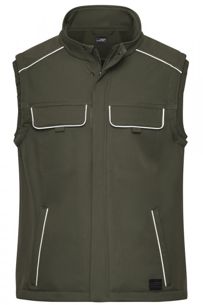Robustes, strapazierfähiges Softshellmaterial, Innenseite Fleece Wind- und wasserabweisend (2.000mm Wassersäule) Atmungsaktiv und wasserdampfdurchlässig (2.000g/m²/24h) Stehkragen Verlängertes Rückenteil Elastischer Abschluss am Armausschnitt für perfekte Passform Durchgehend unterlegter Reißverschluss mit Windschutzblende und Kinnschutz Seitentaschen und Innentasche mit Reißverschluss Brusttaschen mit losem Taschenbeutel zur einfachen Veredelung Diverse Innentaschen Reflexelemente (ohne Schutzfunktion/keine PSA) an Taschen, Schulter und Rückenteil Reißverschlüsse: YKK Knöpfe und Reißverschlüsse: Um Beschädigungen am zu bearbeitenden Produkt zu vermeiden, sind alle Knöpfe und Reißverschlüsse verdeckt verarbeitet.