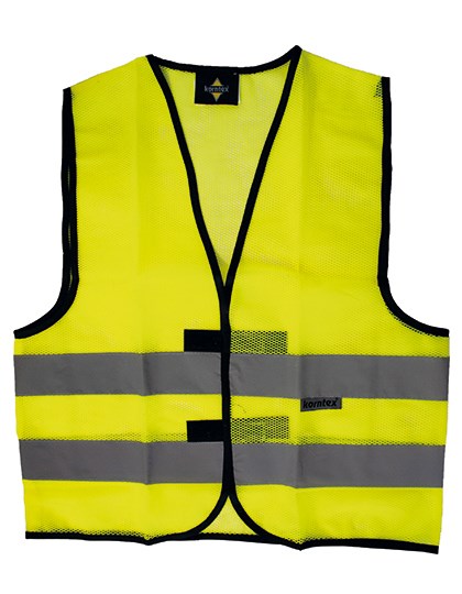 Korntex® Sommer-Mesh-Weste, Atmungsaktiv | Saumnähte mit schwarzer Polyestereinfassung - Korntex Style | Ideal für heiße Einsatzorte | Zwei 5 cm breite Reflektions-Streifen um den Körper | Größenverstellbar durch zwei Klettverschlüsse an der Vorderseite | Mit EAN Barcode ausgestattet | Einzeln in Polybeutel verpackt | Der Hersteller gewährleistet die Reflektionseigenschaft gemäß EN-Norm für 25 Waschgänge bis 40 °C