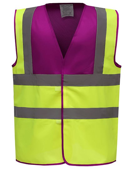 High-Vis Yellow, Orange und Yellow / Orange entsprechen Norm EN ISO20471:2013 Klasse 2 | Black, Lime, Navy, Purple, Paramedic Green, Red, Raspberry, Royal Blue Yoke auf Hi-Vis Yellow entsprechen Norm EN ISO20471:2013 Klasse 1 | Alle anderen Farben bieten erhöhte Sichtbarkeit in allen möglichen Umgebungen | 100% Polyester mit Klettverschluss | Zwei 5 cm breite Reflektions-Streifen umlaufend um den Körper und über jede Schulter | Der Hersteller gewährleistet die Reflektionseigenschaft gemäß EN-Norm für 25 Waschgänge
