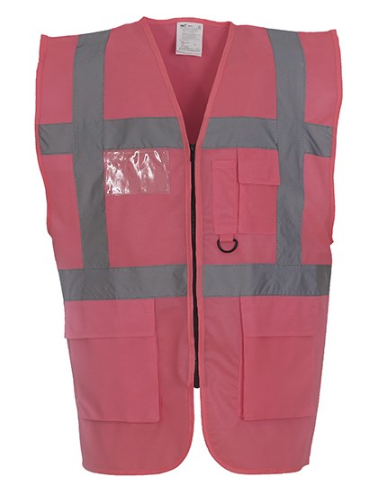 High-Vis Yellow, Orange und Yellow / Orange entsprechen Norm EN ISO20471:2013 Klasse 2 | Paramedic Green / Yellow, Royal Blue / Yellow, Red / Yellow, Yellow / Black, Orange / Black, Yellow / Navy, Orange / Navy, Yellow / Grey, Orange / Grey und Yellow / Purple entsprechen Norm EN ISO20471:2013 Klasse 1 | Alle anderen Farben bieten erhöhte Sichtbarkeit in allen möglichen Umgebungen | 5 cm breiter Reflektions-Streifen um den Körper und über beide Schultern | Handy- / Funkgerätetasche auf der linken Brust | Durchgehender Reißverschluss vorne | Zwei Taschen mit Klappen, zugänglich von oben und von der Seite | Stifttaschen und Schlüsselhalter | Ausweistasche auf der rechten Brustseite | Große Veredlungsfläche hinten | Der Hersteller gewährleistet die Reflektionseigenschaft gemäß EN-Norm für 25 Waschgänge