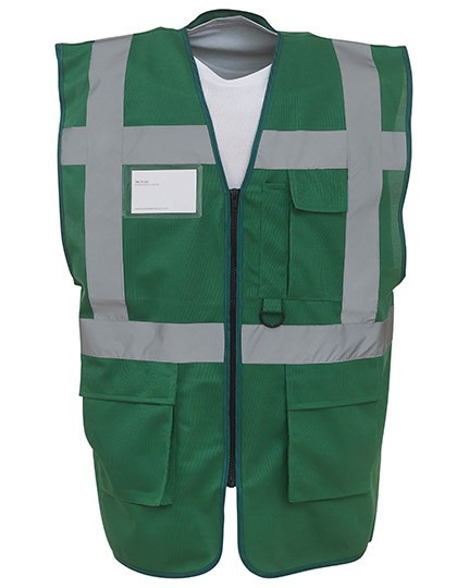 High-Vis Yellow, Orange und Yellow / Orange entsprechen Norm EN ISO20471:2013 Klasse 2 | Paramedic Green / Yellow, Royal Blue / Yellow, Red / Yellow, Yellow / Black, Orange / Black, Yellow / Navy, Orange / Navy, Yellow / Grey, Orange / Grey und Yellow / Purple entsprechen Norm EN ISO20471:2013 Klasse 1 | Alle anderen Farben bieten erhöhte Sichtbarkeit in allen möglichen Umgebungen | 5 cm breiter Reflektions-Streifen um den Körper und über beide Schultern | Handy- / Funkgerätetasche auf der linken Brust | Durchgehender Reißverschluss vorne | Zwei Taschen mit Klappen, zugänglich von oben und von der Seite | Stifttaschen und Schlüsselhalter | Ausweistasche auf der rechten Brustseite | Große Veredlungsfläche hinten | Der Hersteller gewährleistet die Reflektionseigenschaft gemäß EN-Norm für 25 Waschgänge