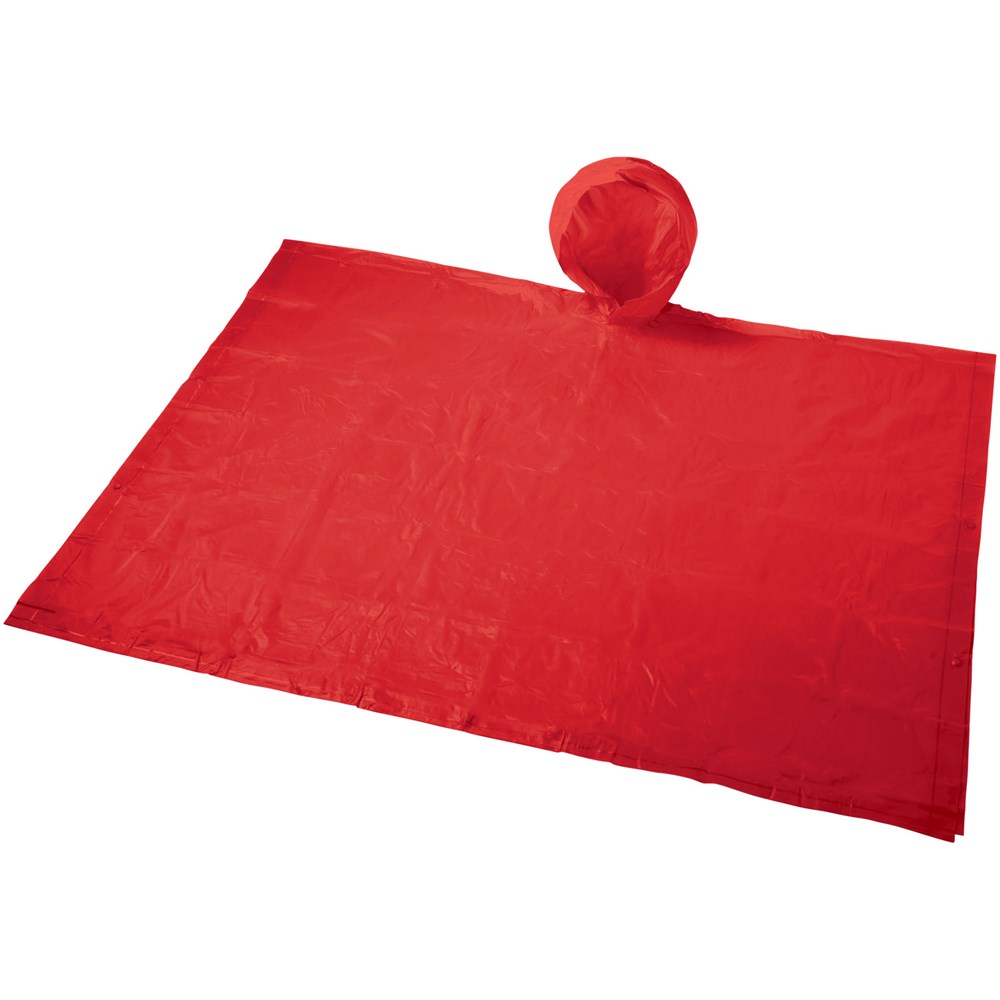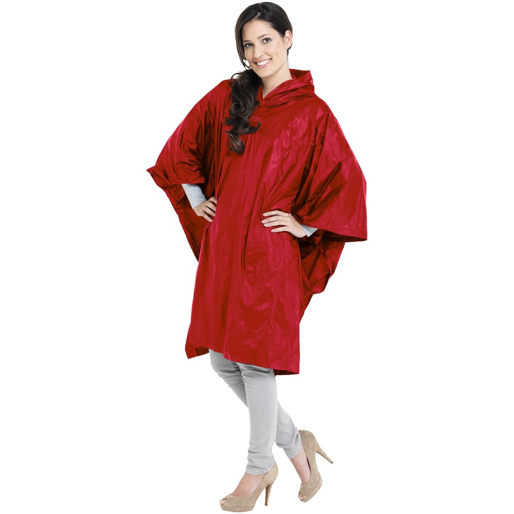 Ein faltbarer Poncho mit Kapuze für unerwartete Regenschauer bei jeder Outdoor-Aktivität. Der wiederverwendbare Poncho ist 100x130 cm groß und hat auf jeder Seite einen Knopfverschluss. Erhältlich in vielen verschiedenen Farben mit einer großen Dekorationsfläche auf dem Beutel.