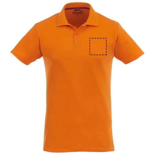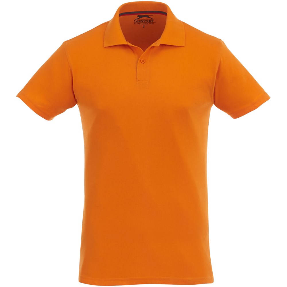 Flachstrickkragen. 2-er Knopfleiste mit gravierten Knöpfen. 2-farbiges Nackenband. Gravierte Ton-in-Ton Knöpfe. Transfer Hauptlabel für den etikettfreien Komfort.