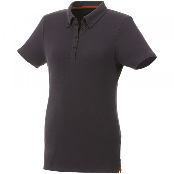 Stoff Einfassung am Kragen. Stetch-Material. 4er Knopfleiste. Button-Down Kragen. Seitenschlitze. Nackenband in Kontrastfarbe. Halbmond. Gravierte Ton-in-Ton Knöpfe. Transfer Hauptlabel für den etikettfreien Komfort.