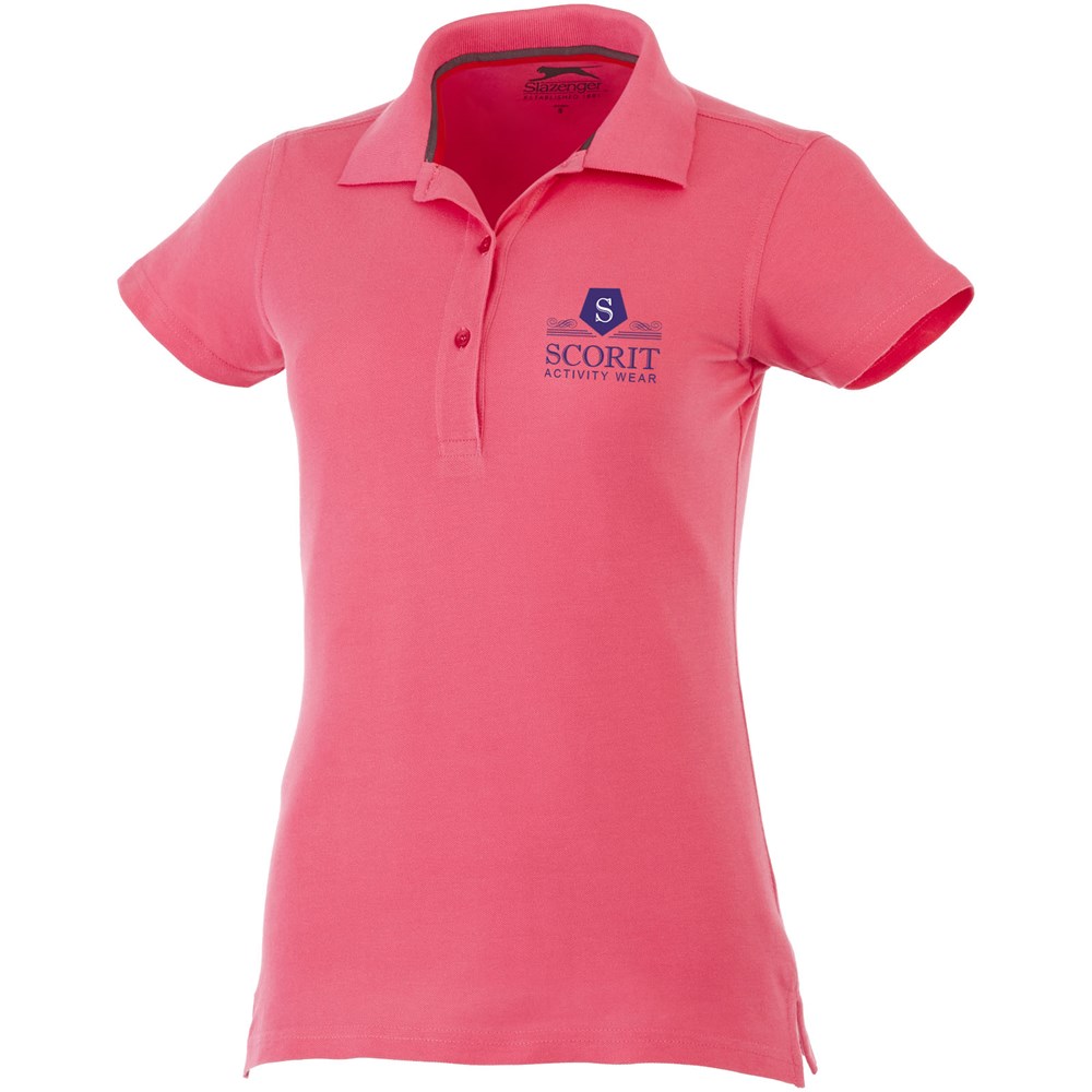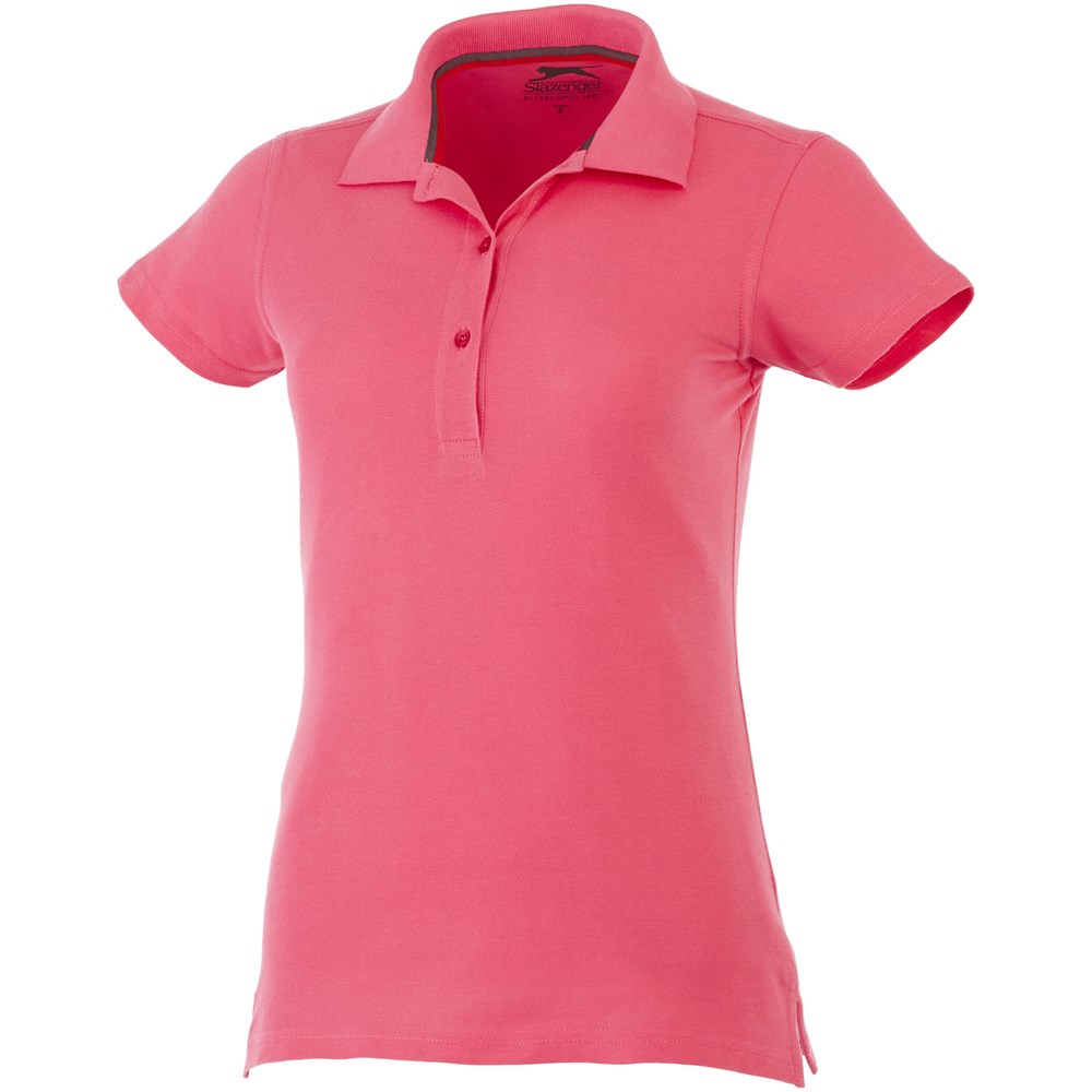 Flachstrickkragen. 3er-Knopfleiste. 2-farbiges Nackenband. Gravierte Ton-in-Ton Knöpfe. Transfer Hauptlabel für den etikettfreien Komfort.