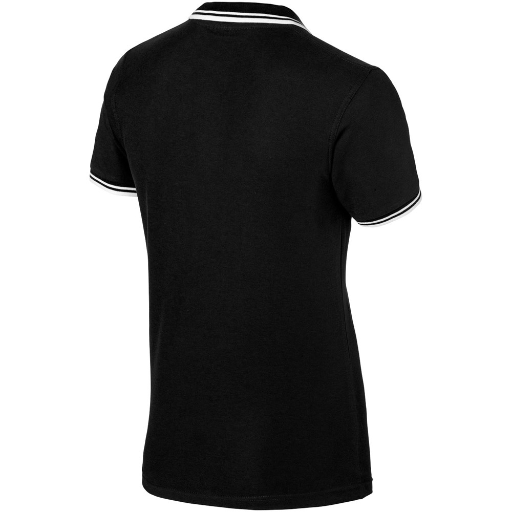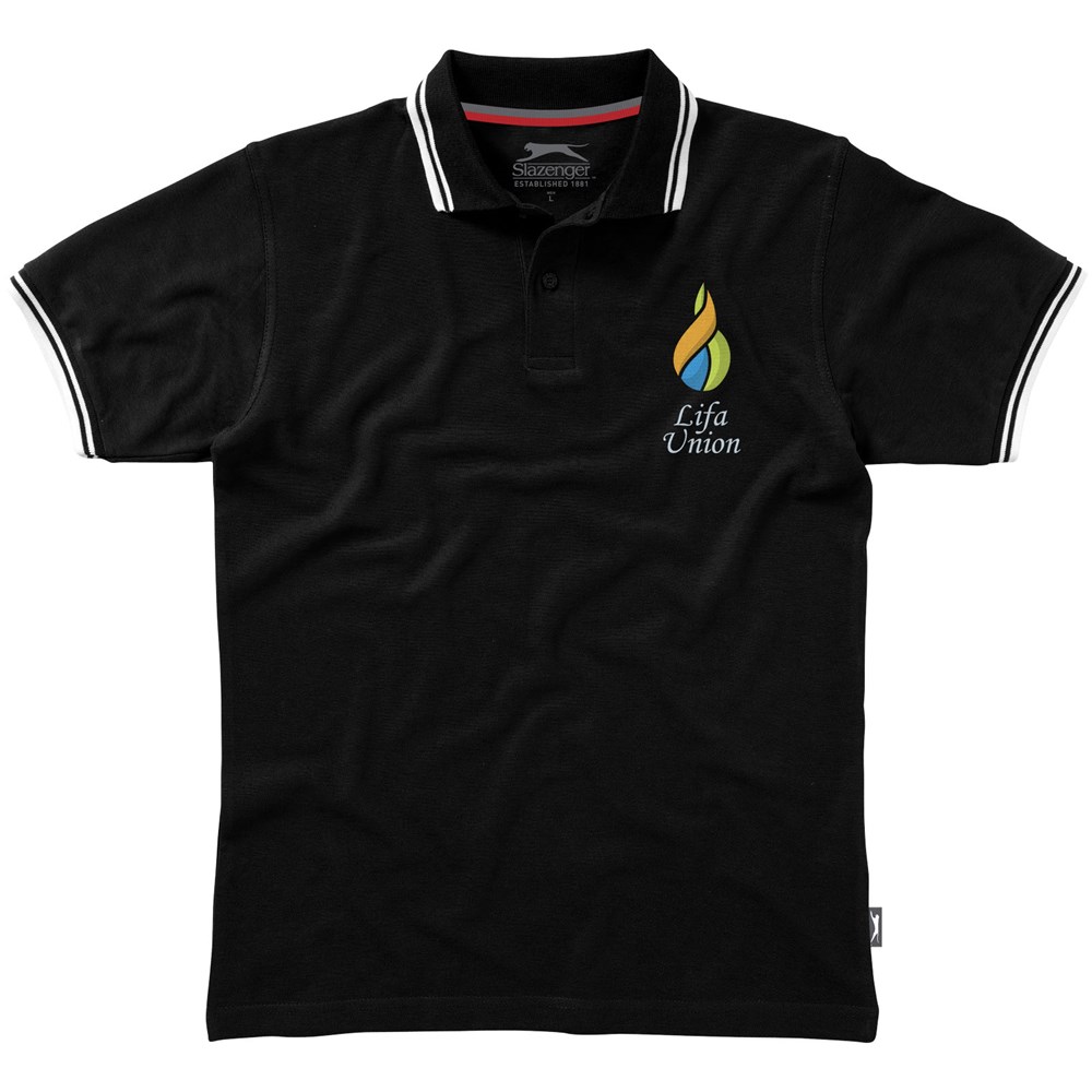 Flachstrickkragen. 1x1 Rippstrickkragen und Bund. Kontrastfarbige Streifen an Kragen und Ärmeln. 2-er Knopfleiste mit gravierten Knöpfen. 2-farbiges Nackenband. Gravierte Ton-in-Ton Knöpfe. Transfer Hauptlabel für den etikettfreien Komfort.. Label an Seitennaht.