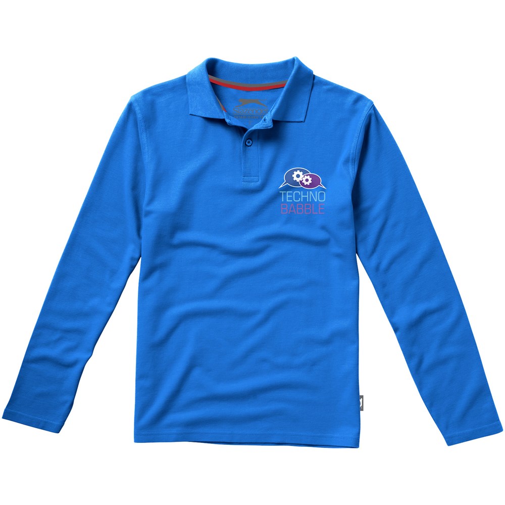 Flachstrickkragen. 2-er Knopfleiste mit gravierten Knöpfen. 2-farbiges Nackenband. Gravierte Ton-in-Ton Knöpfe. Transfer Hauptlabel für den etikettfreien Komfort.. Label an Seitennaht.