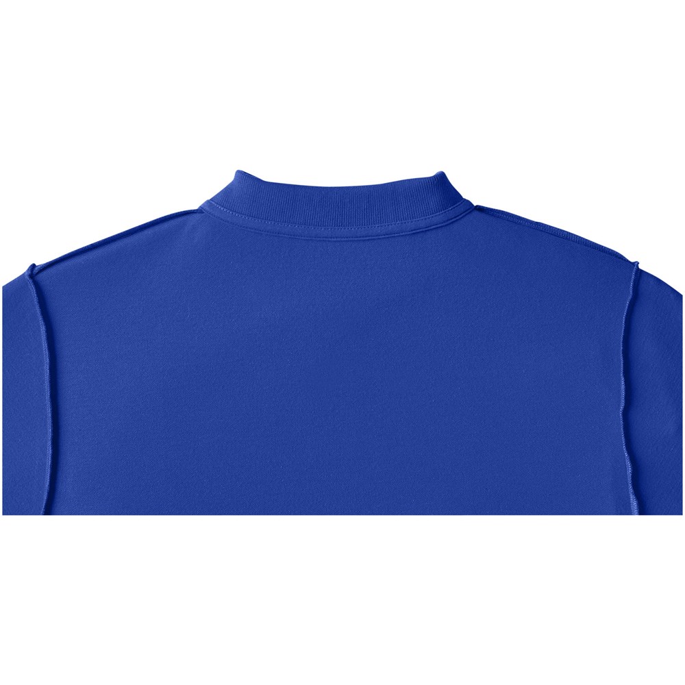 Individuelles Produkt-Branding für den Innenbereich. Ablösbares Label für Tragekomfort. Flachstrickkragen. 1x1 Rippstrickkragen und Bund. 3er-Knopfleiste. Doppelnaht an Kragen und Saum. Knopf Ton-in-Ton.