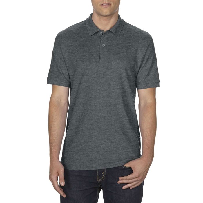 207 g/m2 (White: 200 g/m2). 65% Polyester, 35% Baumwolle, ringgesponnen (Double Piqué). Vorgeschrumpft. DryBlend®: Feuchtigkeit transportierende Eigenschaften. 3er-Knopfleiste mit Ton-in-Ton Knöpfen. Kragen und Ärmelabschluss aus Rippstrick. Hitze-Transfer-Label. Doppelnaht am Bund. Seitennähte mit Seitenschlitzen.