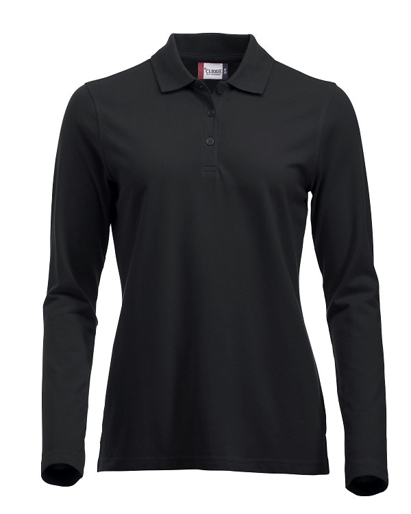 Klassisches Langarm-Polo für Damen mit modernem Schnitt. Knopfleiste mit 3 Ton-in-Ton Knöpfen. Gerippter Kragen. Waschbar bis 60°C Veredelungsempfehlung: SIEBDRUCK DIGITALDRUCK STICK