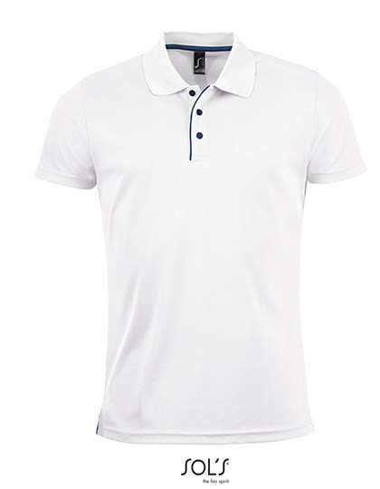 Kurze Ärmel | Knopfleiste mit drei Knöpfen an Vorderseite | Details in Kontrastfarben an Knopfleiste und Seitennähten in weiß (Bei Farbe Black in Royal, White in Navy) | Geeignet für Sublimationsdruck