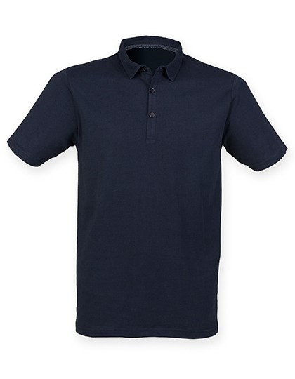 Schmaler, langer Sitz | Schmaler, abgesetzt eingefasster Kragen mit farblich abgestimmter 3-Knopfleiste | Nackenband | Doppelnähte an Saum und Bündchen | Single-Jersey | Heraustrennbares Label für einfaches Umlabeln