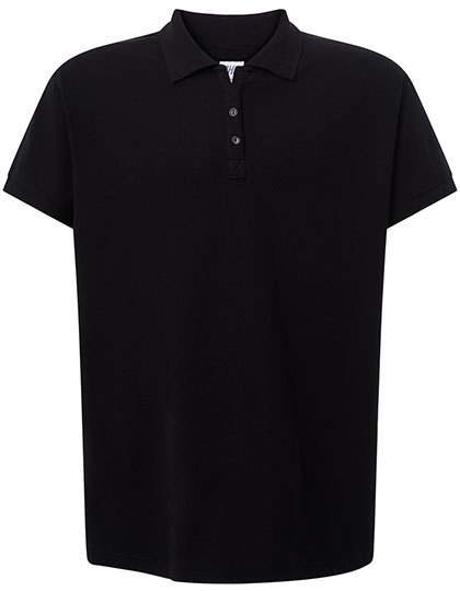 Piqué-Material | Knopfleiste mit drei Knöpfen | 1x1 Ripp-Strick-Kragen und Bündchen | Seitenschlitze