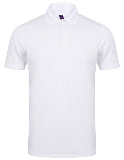 Modern geschnittenes, feuchtigkeitsabweisendes Herren-Poloshirt mit zusätzlichen Stretchfasern | Leichtes Micro-Piqué mit kurzem Kragen, eng anliegenden Ärmeln und Bündchen | Passe vorne und hinten an der Schulter | Micro-Piqué ist ideal zum Bedrucken und Besticken | 3-Knopfleiste mit gleichfarbigen Knöpfen | Henbury-Markenlabel im Kragenbereich abtrennbar