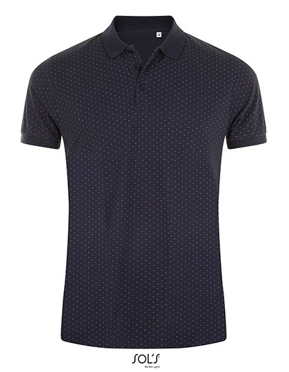 Polka Dot-Muster | Kurze Ärmel | Knopfleiste mit drei farblich abgestimmten Knöpfen | Seitenschlitze am Bund | Geschnitten und genäht | Ringgesponnene Baumwolle | Gerippte Kragen- und Ärmelbündchen | Nackenband