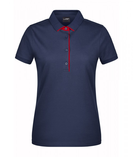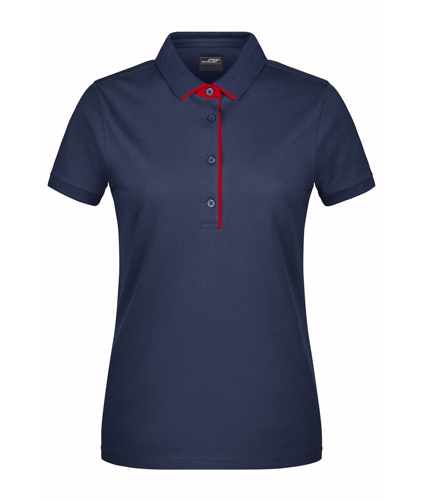 Hochwertige Piqué-Qualität Gekämmte, ringgesponnene Baumwolle Gestrickter Polokragen und Armbündchen Kontraststreifen am Kragen Kragensteg und Knopfleiste innen in Kontrastfarbe Knöpfe Ton in Ton Seitenschlitze JN725: taillierter Schnitt, 4 Knöpfe JN726: 3 Knöpfe.