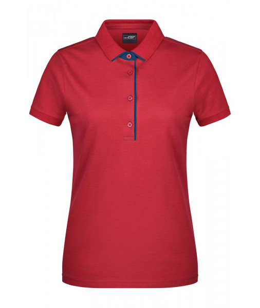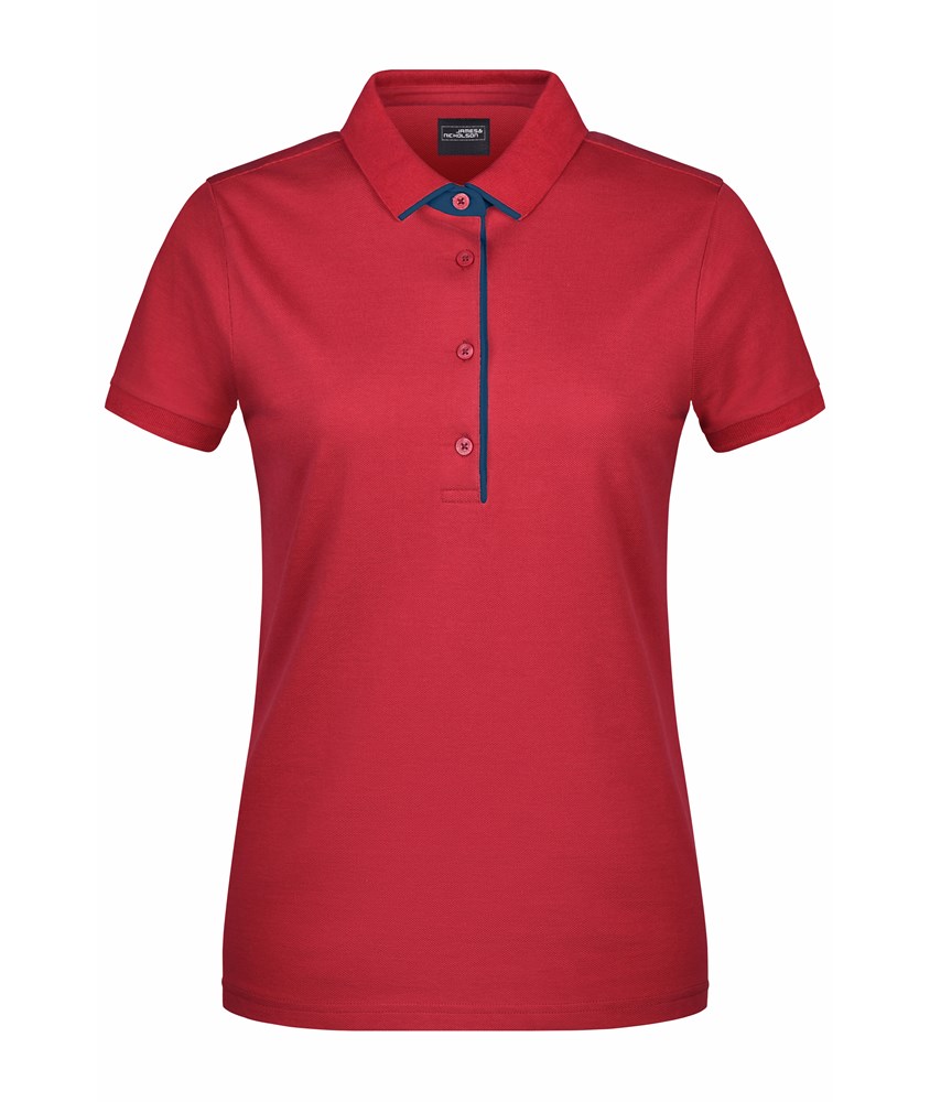 Hochwertige Piqué-Qualität Gekämmte, ringgesponnene Baumwolle Gestrickter Polokragen und Armbündchen Kontraststreifen am Kragen Kragensteg und Knopfleiste innen in Kontrastfarbe Knöpfe Ton in Ton Seitenschlitze JN725: taillierter Schnitt, 4 Knöpfe JN726: 3 Knöpfe.
