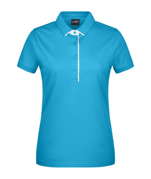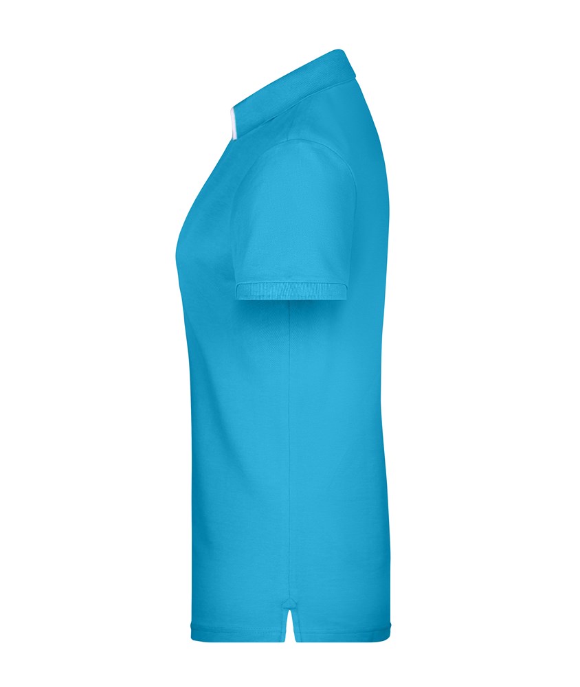 Hochwertige Piqué-Qualität Gekämmte, ringgesponnene Baumwolle Gestrickter Polokragen und Armbündchen Kontraststreifen am Kragen Kragensteg und Knopfleiste innen in Kontrastfarbe Knöpfe Ton in Ton Seitenschlitze JN725: taillierter Schnitt, 4 Knöpfe JN726: 3 Knöpfe.