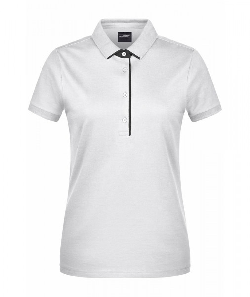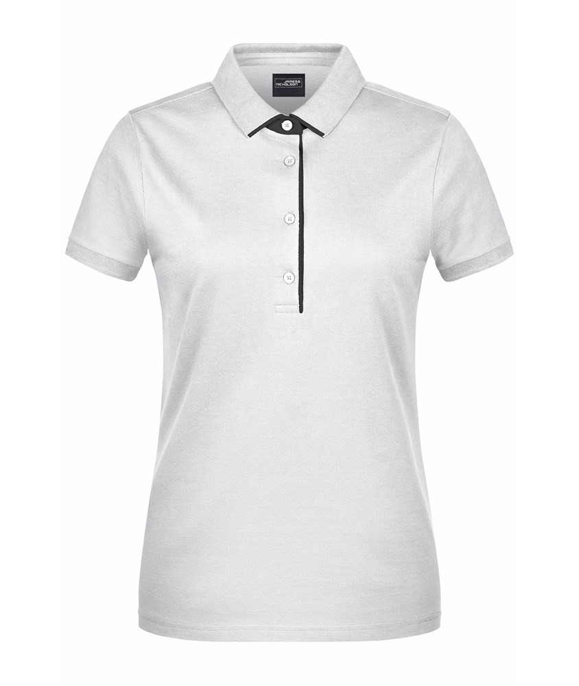 Hochwertige Piqué-Qualität Gekämmte, ringgesponnene Baumwolle Gestrickter Polokragen und Armbündchen Kontraststreifen am Kragen Kragensteg und Knopfleiste innen in Kontrastfarbe Knöpfe Ton in Ton Seitenschlitze JN725: taillierter Schnitt, 4 Knöpfe JN726: 3 Knöpfe.
