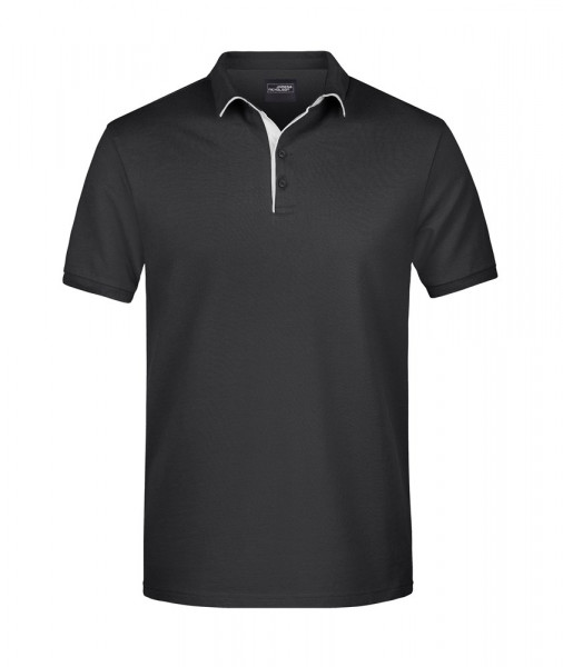 Hochwertige Piqué-Qualität Gekämmte, ringgesponnene Baumwolle Gestrickter Polokragen und Armbündchen Kontraststreifen am Kragen Kragensteg und Knopfleiste innen in Kontrastfarbe Knöpfe Ton in Ton Seitenschlitze JN725: taillierter Schnitt, 4 Knöpfe JN726: 3 Knöpfe.