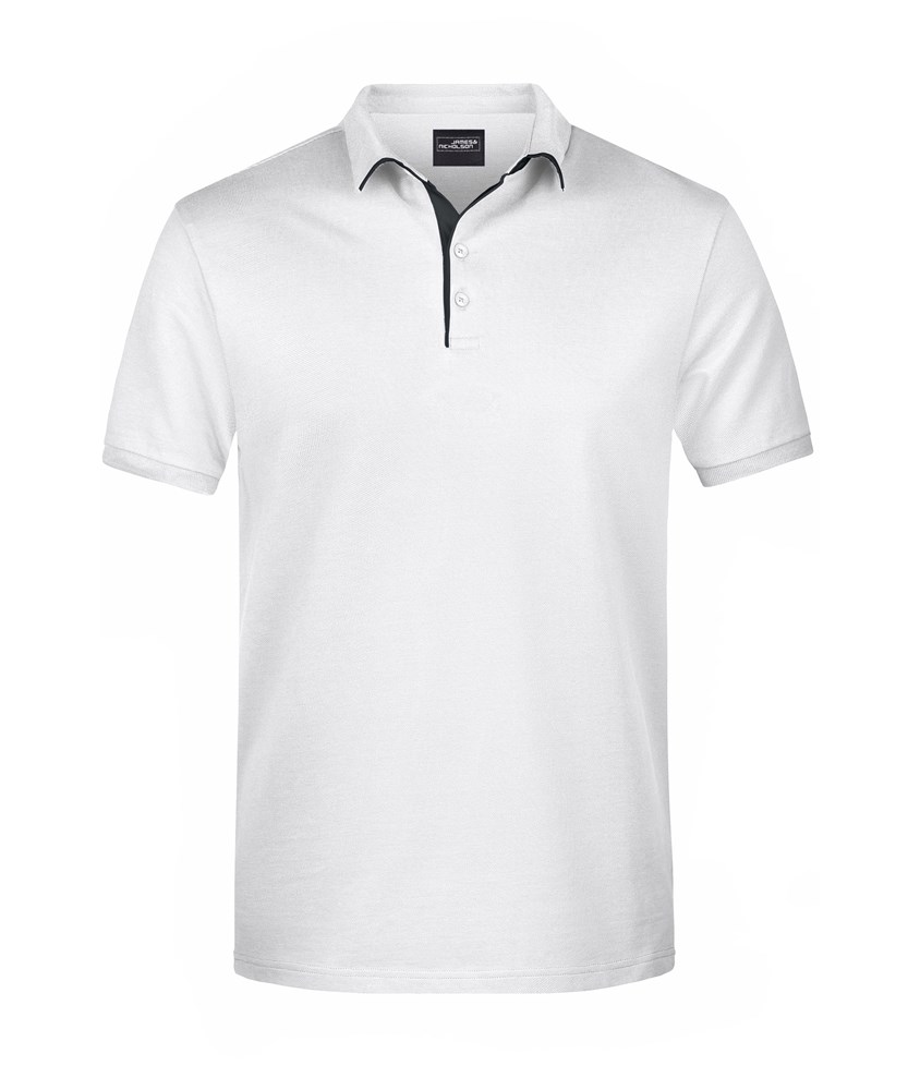 Hochwertige Piqué-Qualität Gekämmte, ringgesponnene Baumwolle Gestrickter Polokragen und Armbündchen Kontraststreifen am Kragen Kragensteg und Knopfleiste innen in Kontrastfarbe Knöpfe Ton in Ton Seitenschlitze JN725: taillierter Schnitt, 4 Knöpfe JN726: 3 Knöpfe.